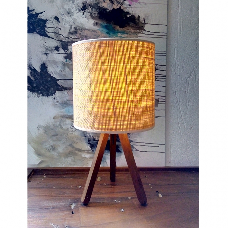 MAIS DETALHES:Produto sob encomenda, Tripé em madeira maciça . Pantalha 25,5 x 25 cm altura Ver disponibilidade de outros revestimentos.